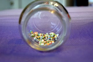 Here's my jar of beads. I just need to string them to make a pretty bracelet or necklace if I have enough. Have I mentioned how much I love my new camera!